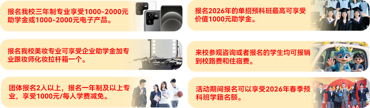 报名后,可享受国家、企业、学校三方助学服务,帮助学子减轻经济压力!